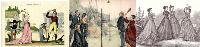 О том, что на Руси увлекались игрой в волан, свидетельствуют старинные гравюры и многочисленные литературные источники. Это зафиксировано у Гавриила Романовича Державина в оде «Евгению. Жизнь званская», у Александра Ивановича Герцена в романе «Былое и думы», у Михайловича Достоевского в повести «Неточка Незванова». Обратимся также к труду Владимира Ивановича Даля - «Толковому словарю живого великорусского языка», первое издание которого вышло в 1863 -1866 годах. Читаем: «Волан. Закругленная с одного конца пробка, с перяным венцом в другом конце, для игры в мячи; леток, летучка; ее бьют, вскидывая ракеткой, лаптой, лопастью». Заметим, что саму игру наши предки окрестили «леток» - ясно и лаконично, а слову «ракетка» часто предпочитали термин «лапта». Один такой предмет сохранился в Загорском музее игрушек: это старинная деревянная ракетка XVIIIвека, по сравнению с современными более круглая и уступающая им по размеру.