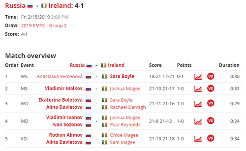В последний день группового этапа россияне встретились с командой Ирландии и одержали победу 4-1.