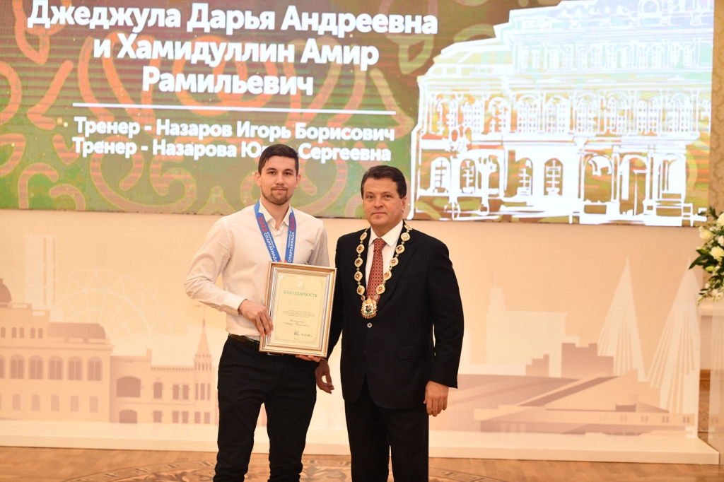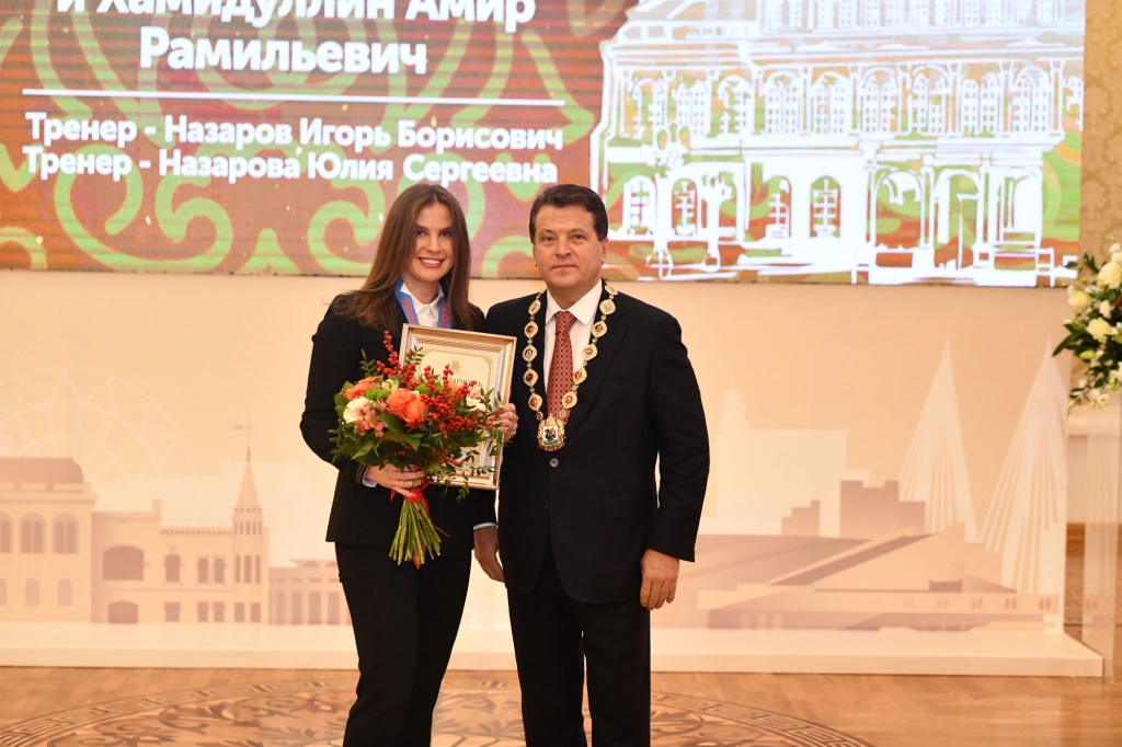 Мэр столицы РТ, в свою очередь, поблагодарил руководство республики и ее Президента Рустама Минниханова за поддержку спортсменов, а также тренерский состав. «Спасибо за ваш труд, тот бесценный опыт, которым вы делитесь с нашими ребятами, за то, как вкладываете в них свою душу и всецело принадлежите спорту. Благодаря вам дети растут целеустремленными, смелыми и уверенными в себе, завоевывая призовые места на самых престижных спортивных соревнованиях российского и международного уровня, достойно представляя наш город в составе сборных команд Республики Татарстан и России», – заключил И.Метшин. Он также отметил участие родителей, чей труд, воспитание, любовь и вера есть в каждой победе.