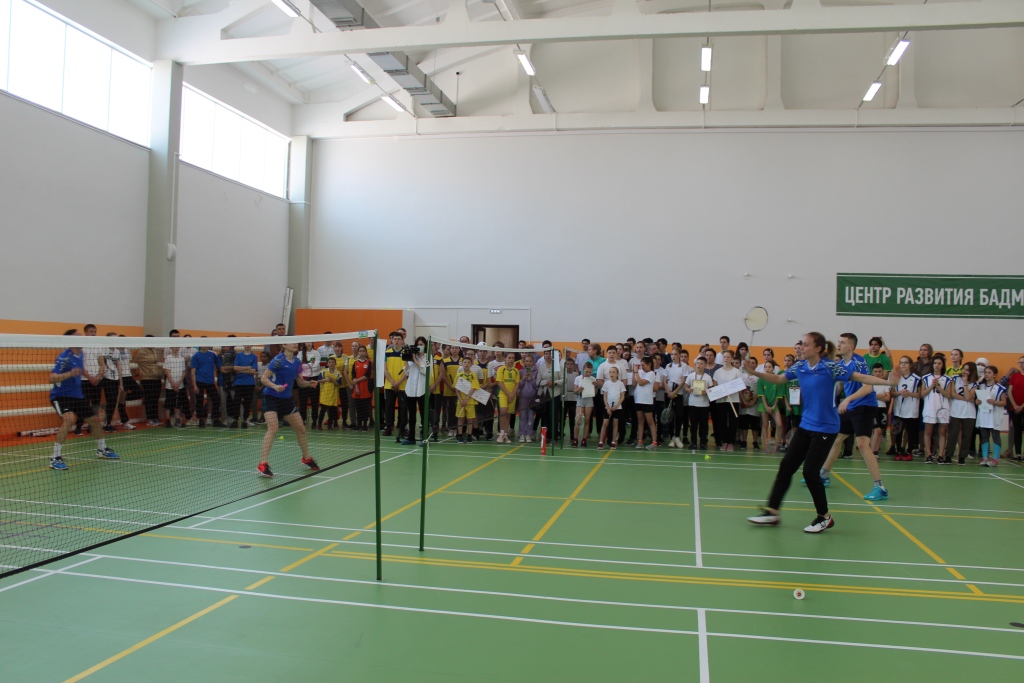 После торжественной части прошли показательные выступления спортсменов - участников Олимпийских игр в Токио по бадминтону. Ребята смогли пообщаться с ними и сфотографироваться.