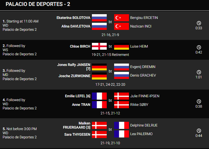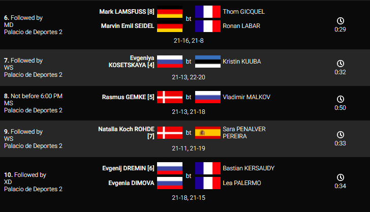 Евгения Косецкая продолжает путь в четвертьфинал победв Kristin Kuuba. Владимир Мальков попытался зацепиться во второй партии, но не сумел преодолеть Rasmus Gemke. Сеянные 6ми Евгений Дремин и Евгения Димовы легко обыграли французов. Завтра они встретятся с победителями Игр Содружества Adcock.
