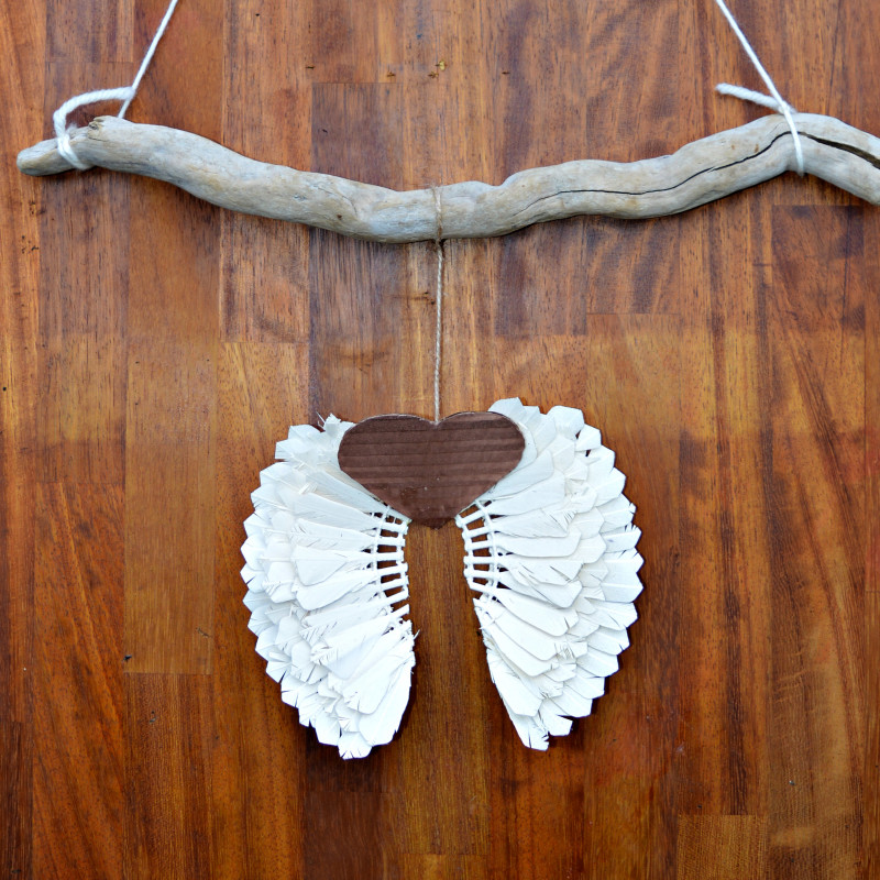 “Крылья ангела” можно повесить на веточку или сделать из них целую гирлянду, можно и по одному повесить на елку как украшение. Еще можно написать на сердечке имя и использовать на рождественском столе как указатель места.